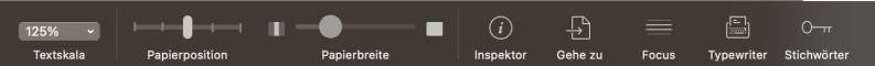 Wenn du dich nicht im Schreibmodus befindest, kannst du über das Symbol auch das Schreibmaschinen-Scrollen aktivieren. Auch hier bleibt die Zeile, in der Du gerade schreibst, in der Mitte des Bildschirms.